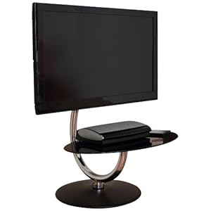 This C shaped TV stand will add a modern flair to your entertainment area. The TV stand also swivels 360-Degree to position your TV anyway you like. The tempered black glass shelf will hold your cable box and DVD player. Holds Plasma/LED/LCD TV from 15 to 50-inch.